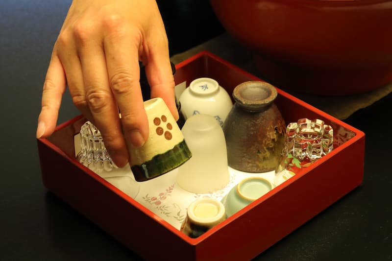 มื้อนี้เราออเดอร์เหล้าสาเกประจำท้องถิ่นนี้ด้วย เนื่องจากเป็นเหล้าสาเกที่มีชื่อเสียงมาก และเรายังสามารถเลือกถ้วยเหล้าที่ชอบได้ด้วย
