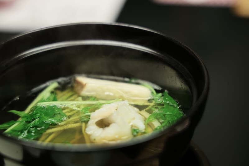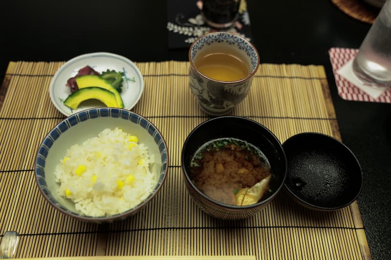 ต่อด้วยข้าวใส่ถั่ว (Mame Gohan) และน้ำซุปมิโซะ