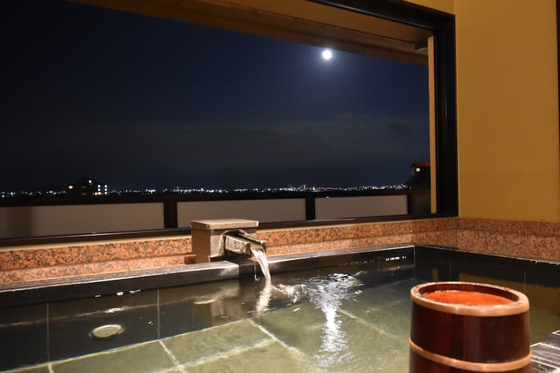 มองวิวกลางคืนจากบ่ออาบน้ำกลางแจ้งก็ยิ่งสวยไปอีก