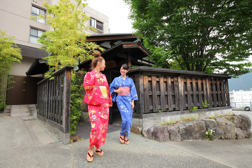 ช่วงฤดูที่อากาศอบอุ่น ท่านสามารถสวมชุดยูกาตะ แล้วออกไปนอกเรียวคัง เพื่อเดินเล่นโดยรอบ มองดูชีวิตความเป็นอยู่ของชาวญี่ปุ่นได้ (เนื่องจากชุดยูกาตะจะมีความเบา โดยหลักเป็นชุดที่นิยมใส่ในช่วงฤดูร้อน จึงไม่เหมาะที่จะใส่ออกไปเดินเล่นนอกเรียวคังในช่วงฤดูหนาว) โดยเฉพาะอย่างยิ่งตามถนนรอบออนเซ็นที่มีบรรยากาศดีๆ การได้สวมชุดยูกาตะออกไปเดินเล่นจะยิ่งให้ความรู้สึกย้อนยุคไปอยู่ในบรรยากาศเก่าๆ ของญี่ปุ่นอีกครั้ง ทั้งนี้ เมื่อจะออกไปเดินข้างนอก ขอให้ใช้รองเท้าไม้ (เกะตะ) ซึ่งเป็นรองเท้าแบบคนญี่ปุ่นโบราณด้วย เพียงเปลี่ยนมาสวมชุดยูกาตะและสวมรองเท้าเกะตะเดินไปด้านนอก ก็ให้ความรู้สึกเหมือนเป็นคนญี่ปุ่นและรู้สึกเหมือนเข้าไปในอีกโลกหนึ่งแล้ว